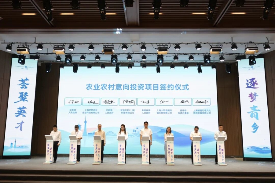 现场还为荣获2024年中国美丽休闲乡村称号的赵巷镇方夏村授予荣誉。华新镇与虹桥花谷国际花卉交易集散中心项目方、朱家角镇与太阳岛&张马村整村运营文旅项目方、白鹤镇与未来智谷草莓核心区建设项目方、香花桥街道与上海竹博园·生态产业园项目方签约,签约项目包括现代农业深耕细作、农文旅商体展融合创新探索等方面,致力于为青浦打造“现代田园城市、生态人文之区”注入澎湃动力。